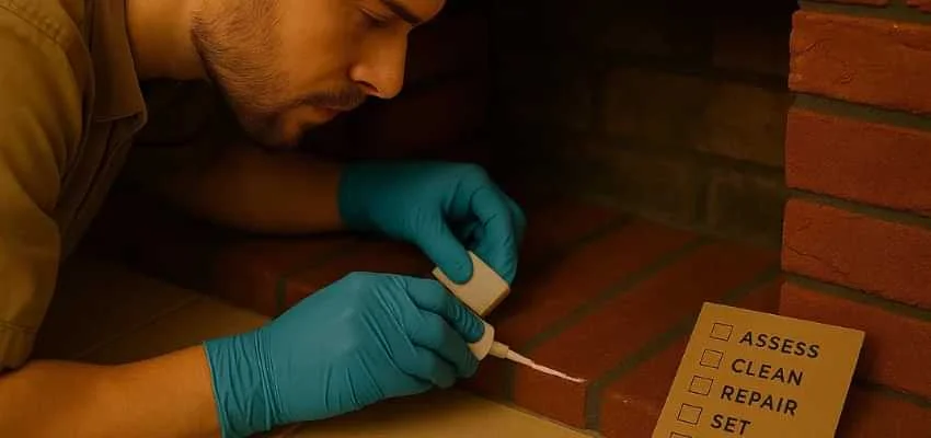 Tiny cracks often start at the firebox opening or along the hearth edge where temperature swings are strongest. In homes across Whisper Creek, Flower Mound, soot and heat slip through those hairlines, softening old adhesives and staining the substrate. What looks like a cosmetic issue can turn into loose corners and chipped edges if it is not addressed.