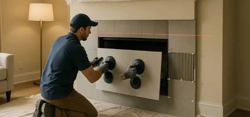 A face refresh changes the mood without a full rebuild. We select heat capable backers, keep joints tight, and align courses carefully so textures read clean from across the room in Windsor Park, Flower Mound.